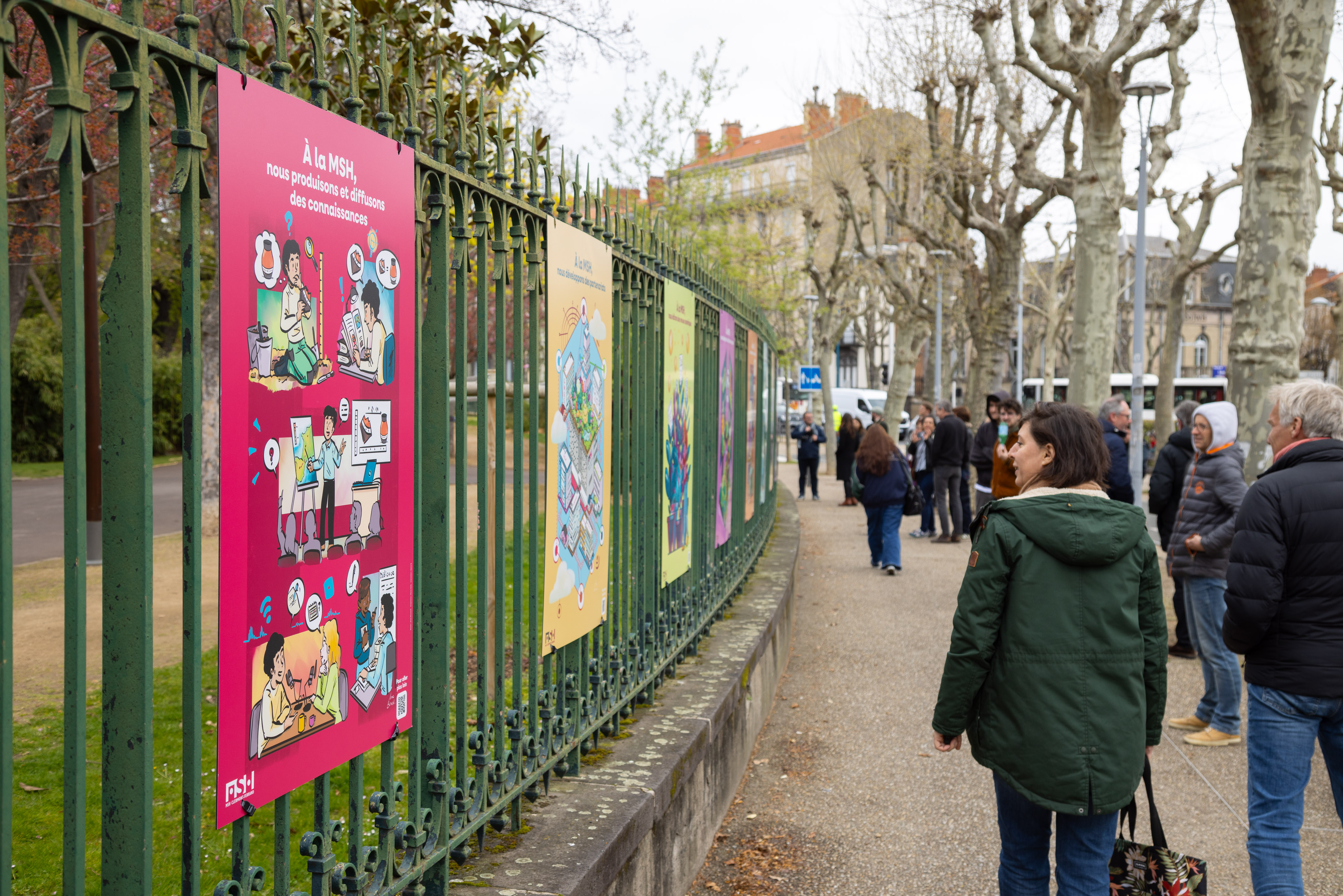 Pour témoigner de ses activités, la Maison des Sciences Humaines de Clermont-Ferrand a confié à Anne Bernardi, illustratrice, autrice de bande dessinée et facilitatrice graphique spécialisée dans la vulgarisation scientifique, la réalisation d'une exposition intitulée Dessine-moi la MSH.