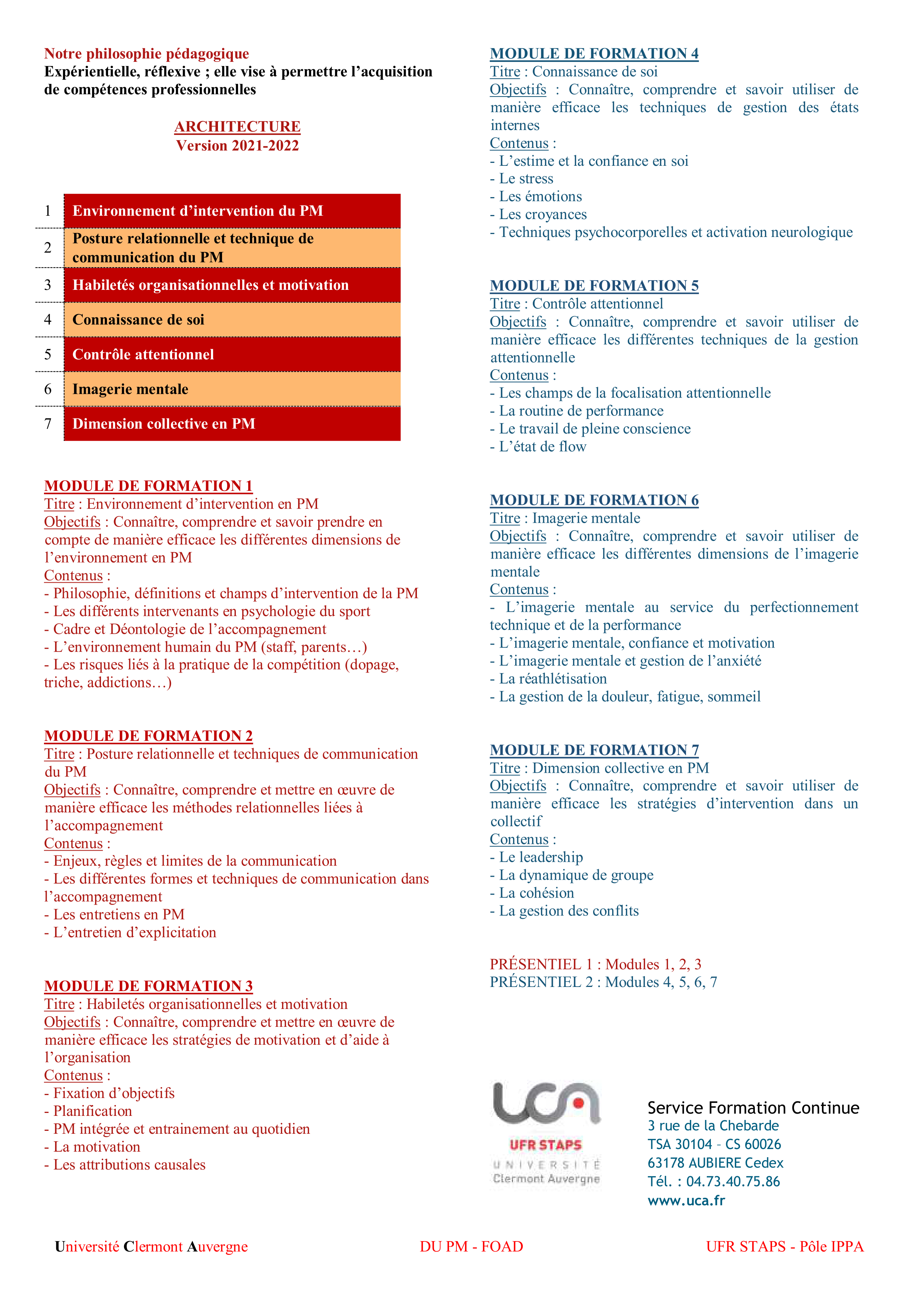 Dipl?me d'Universit¨¦ de Pr¨¦paration Mentale - Interventions et Aide ¨¤ la Performance