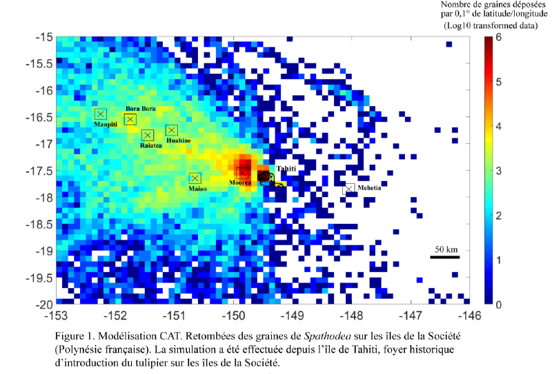 Larrue S., Baray J.-L., Chadeyron J., Meyer J.-Y., Mazal L., Daehler C.C., Fumanal B. (2023). Modeling long-distance seed dispersal of the invasive tree Spathodea campanulata in the Society Islands. Ecological Applications,