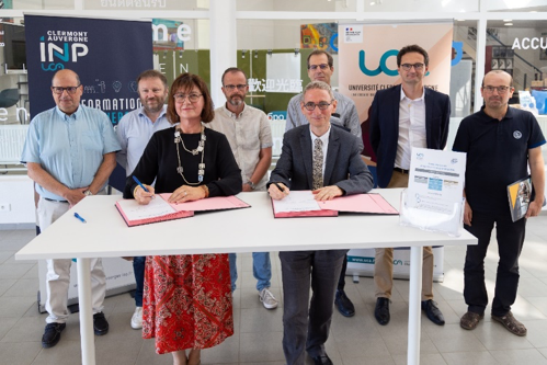 La cérémonie de signature du CPOM de Clermont Auvergne INP s’est déroulée le 29 juin dernier en présence de Mathias BERNARD, président de l’UCA, de Fran?ois LAUPRETRE, président du Conseil d’Administration de Clermont Auvergne INP, de Sophie COMMEREUC, Directrice Générale de Clermont Auvergne INP, des Directeurs des écoles (ISIMA, POLYTECH Clermont et SIGMA Clermont) et des laboratoires (Institut Pascal, Institut de Chimie de Clermont-Ferrand et le LIMOS), des entreprises partenaires et du personnel.