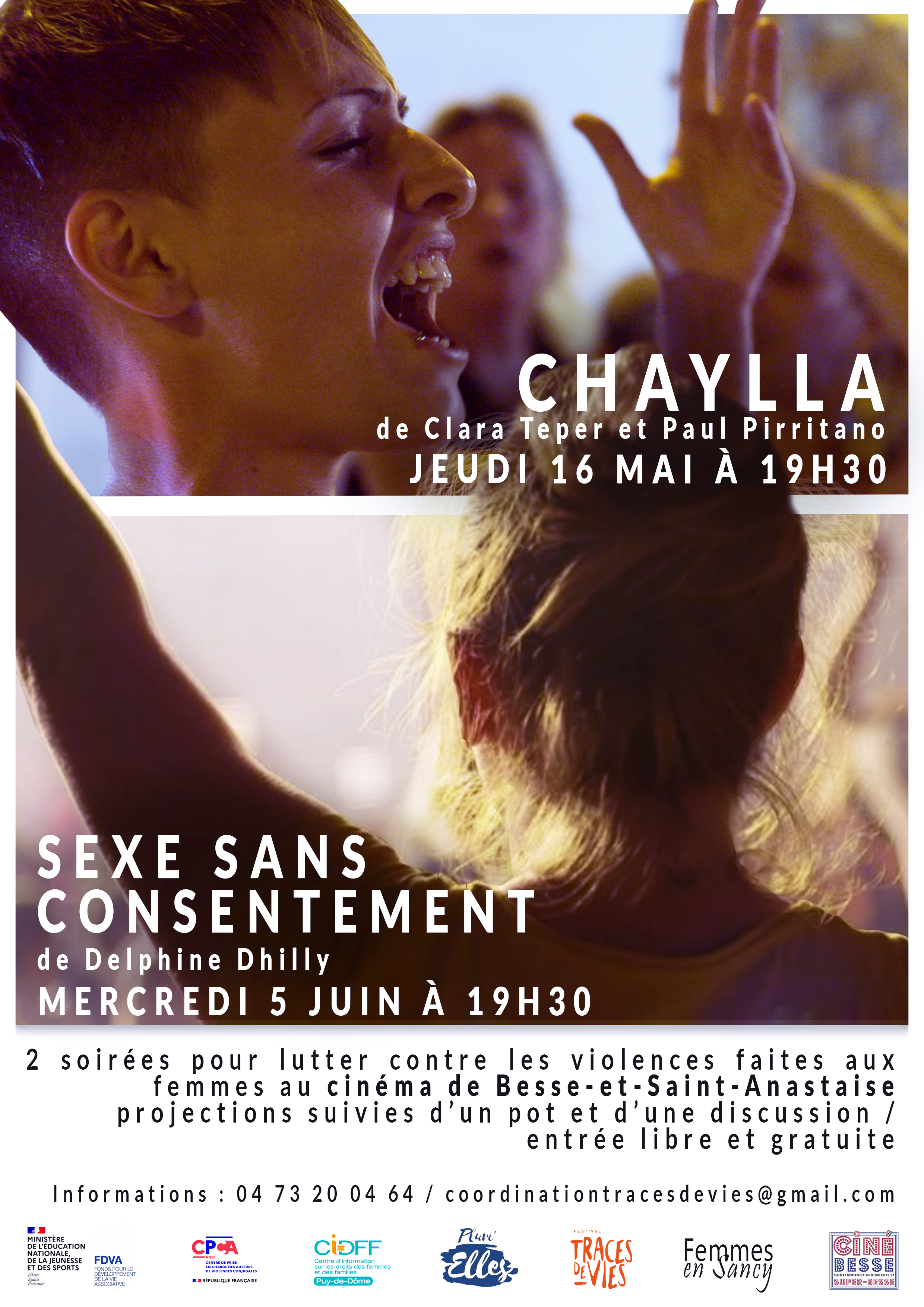 Afin de prévenir les violences dans le couple en ruralité, le CPCA organise avec le CDIFF en partenariat avec l’association ? Traces de Vies ? , deux évènements à Besse Saint Anastaise : 2 ciné-discussion :
