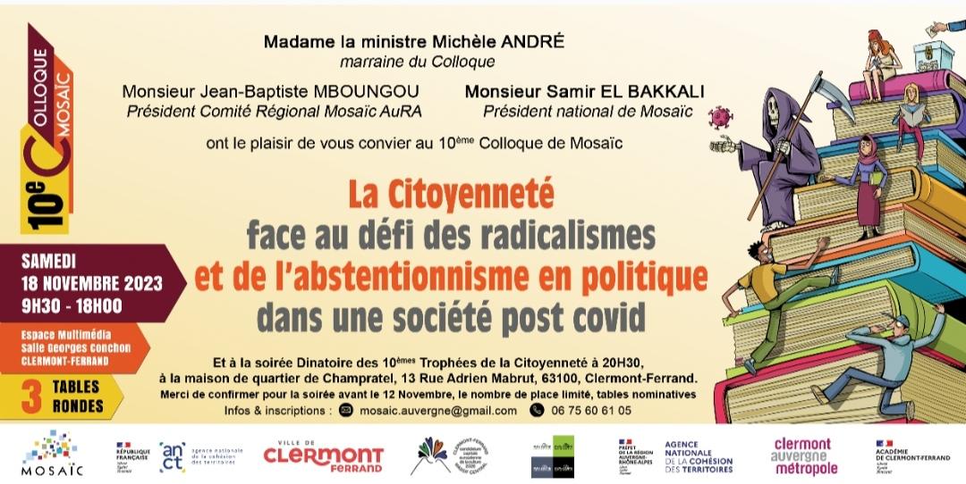 10ème colloque Mosa?c, avec tables rondes et intervenants, sur le thème de la citoyenneté face au défi des radicalismes et de l’abstentionnisme en politique dans une société post covid, ,
