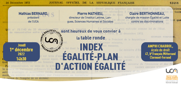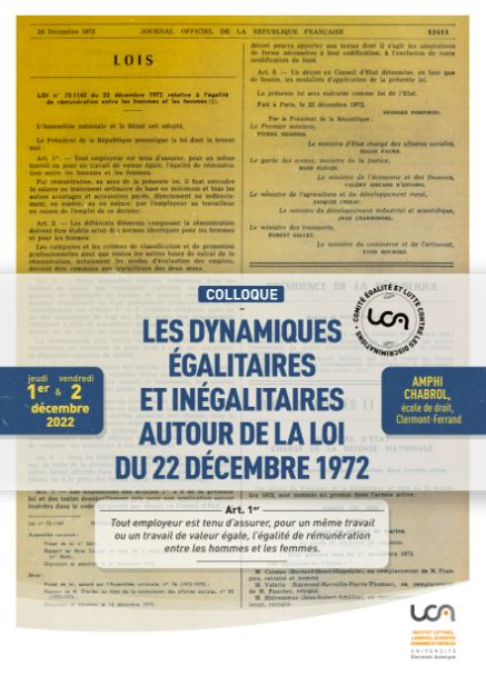 Afin de célébrer le cinquantième anniversaire de la loi sur l’égalité de rémunération entre les femmes et les hommes, l’Université Clermont Auvergne organise un colloque. Ce colloque vise à comprendre l’origine de ces inégalités salariales et professionnelles et à proposer des actions concrètes qui pourraient permettre de les supprimer.