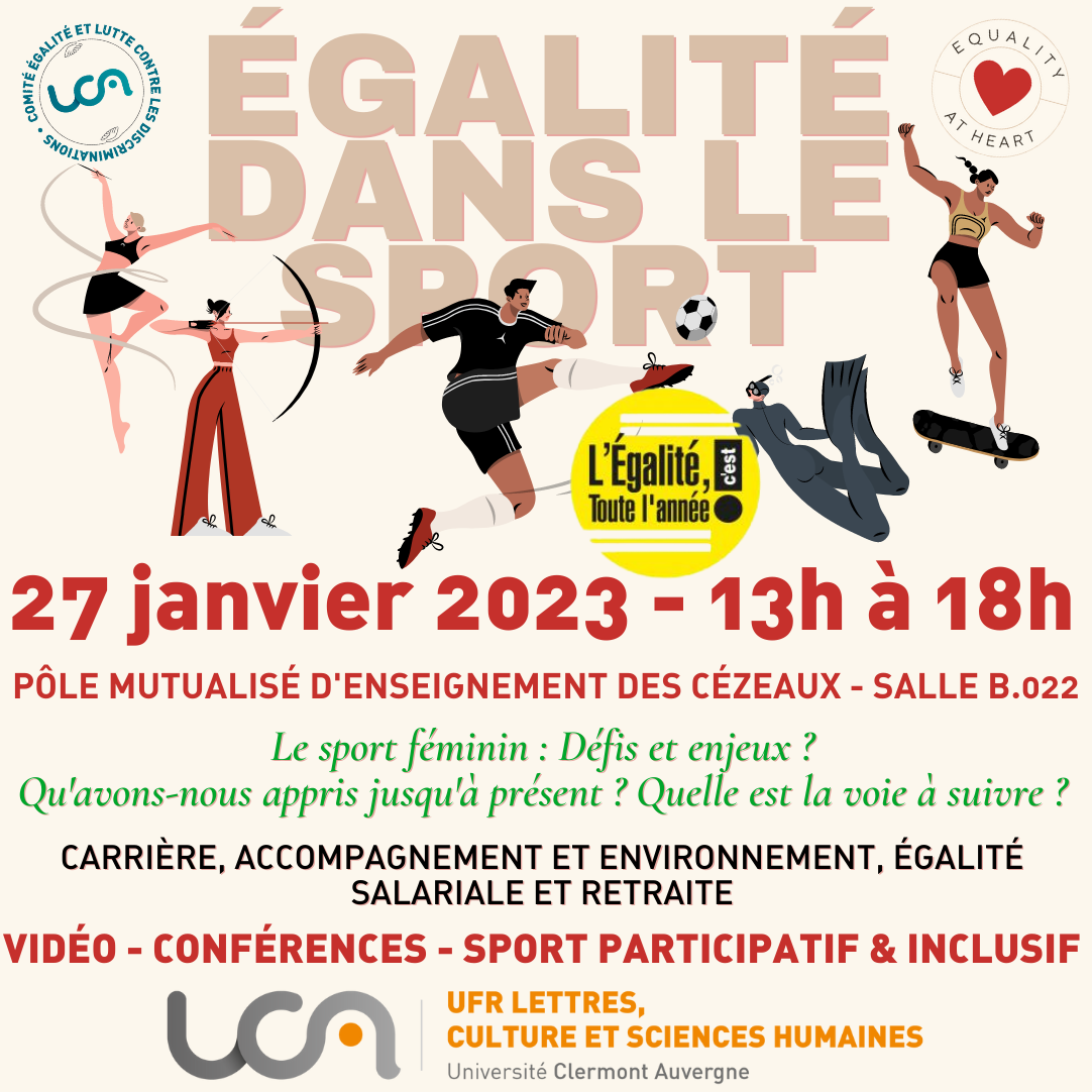Afin de célébrer le cinquantième anniversaire de la loi sur l'égalité de rémunération entre les femmes et les hommes, l'Université Clermont Auvergne organise en collaboration avec les étudiants et étudiantes en master 2 Management des politiques RH de la diversité et de la mobilité, un événement consacré à la thématique des inégalités salariales dans le milieu sportif