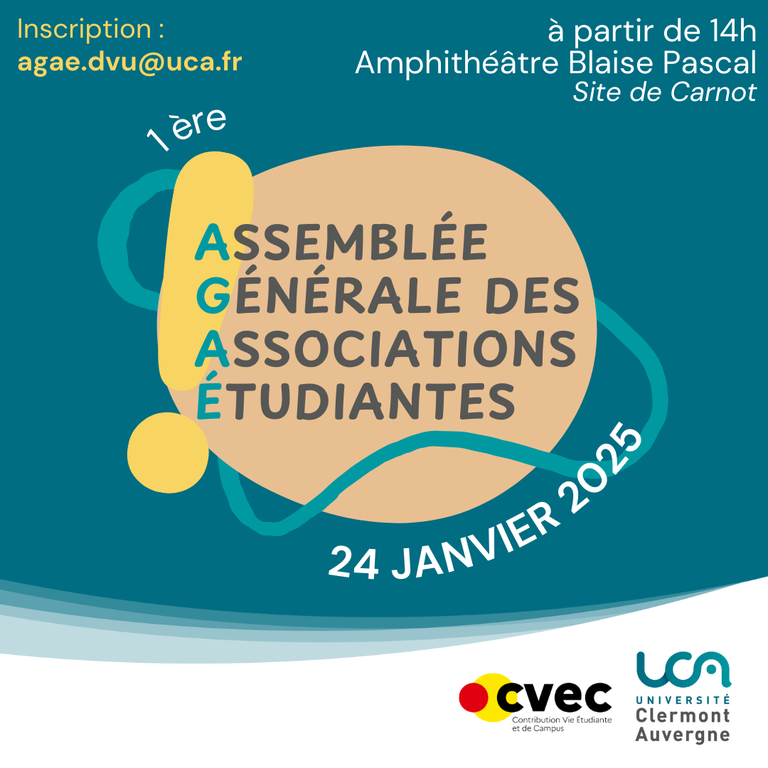 L’Assemblée Générale des Associations étudiantes (AGAé) est une nouvelle instance consultative visant à réunir et faire se rencontrer l’ensemble des associations étudiantes de l’UCA, pour développer leurs actions et partager leurs savoir-faire.