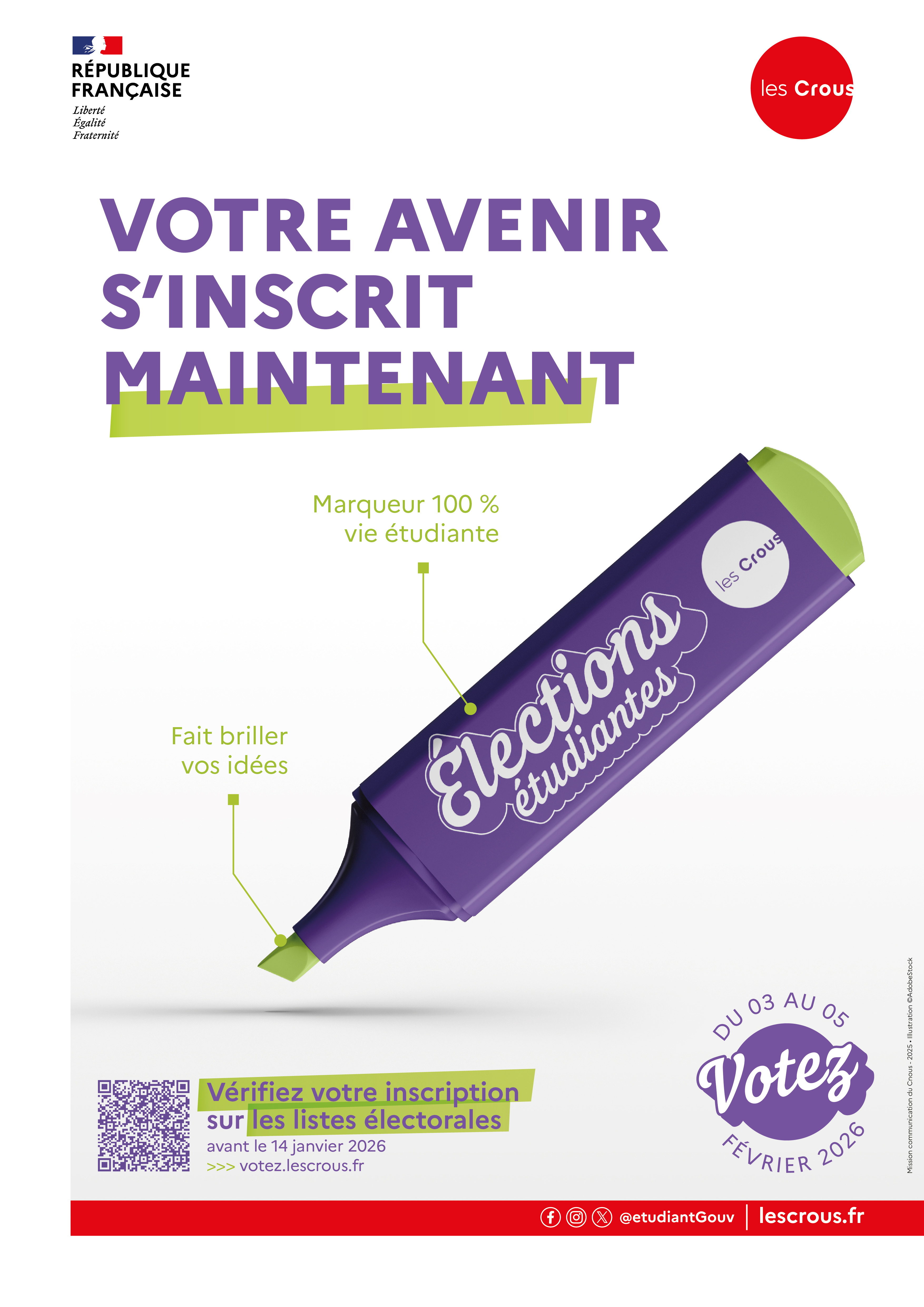 Pour vérifier votre inscription sur la liste, rendez-vous sur https://evote.lescrous.fr/fr/avant le 14 janvier à 12h.